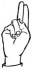 На ћирилици написано ПЕРИША ПЕТРОВ састоји се из 12 слова [?]. Исписано ћириличном једноручном азбуком за глувонеме: